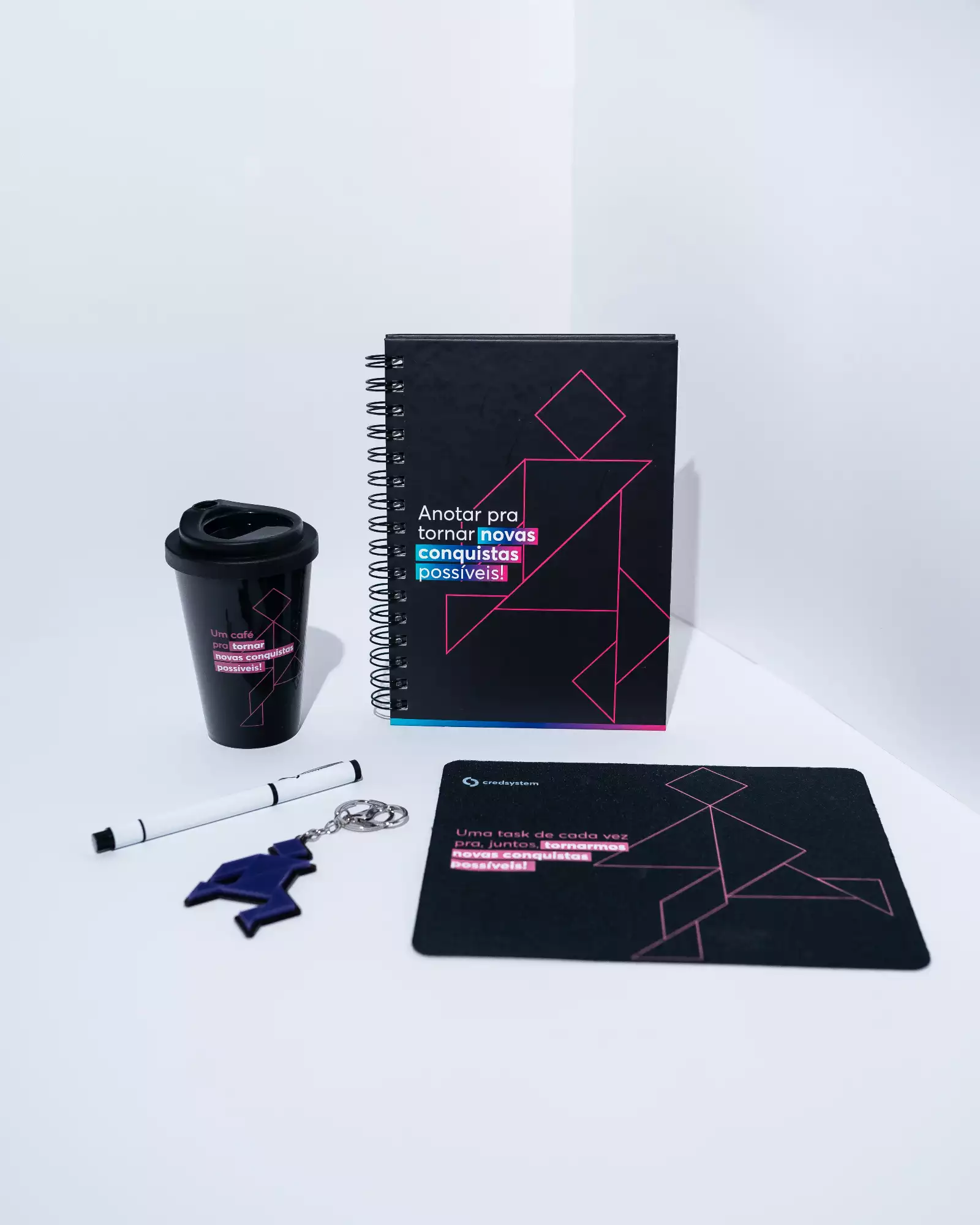 a credsystem precisava lançar sua cultura de forma tangível, algo que um novo colaborador recebesse e já entendesse quem é a marca. a gente desenvolveu o conceito e a arte do zero. o projeto funcionou, e a parceria continua: há quatro anos renovamos o kit de onboarding anualmente, com arte e conceito novos a cada ciclo. ⭐️