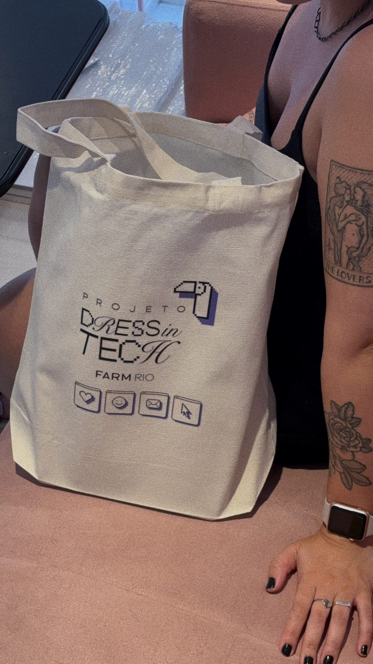 A FARM Rio precisava de um kit para a ação Dress in Tech. a gente entrou como produtora — executamos a montagem e entrega com o padrão de acabamento que a marca exige.