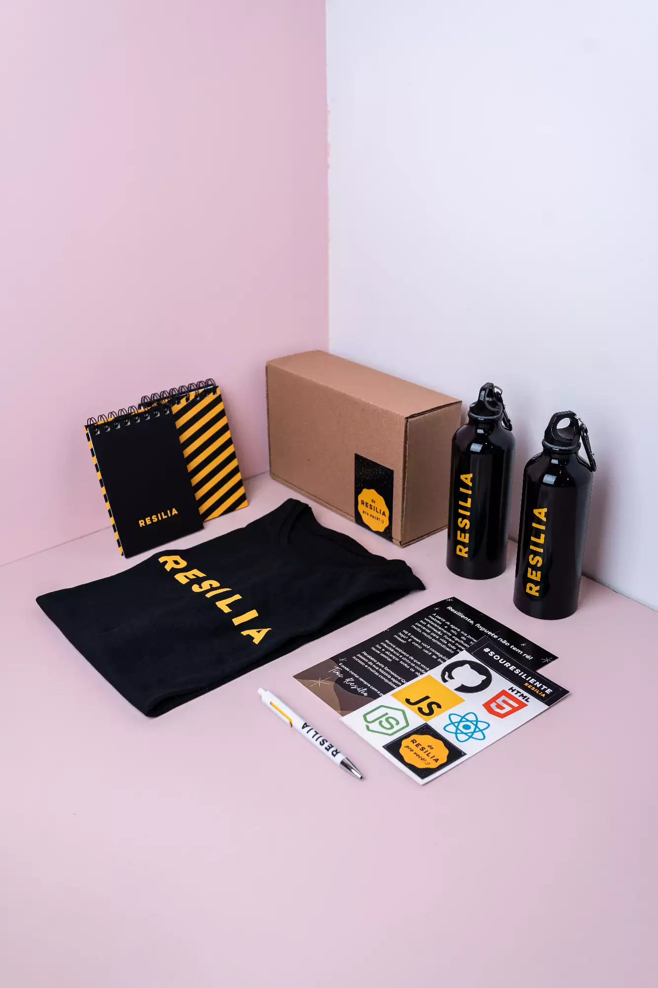 welcome kit com brindes bonitos desenvolvido pra resília, uma empresa de capacitação de pessoas para o mercado de trabalho.
